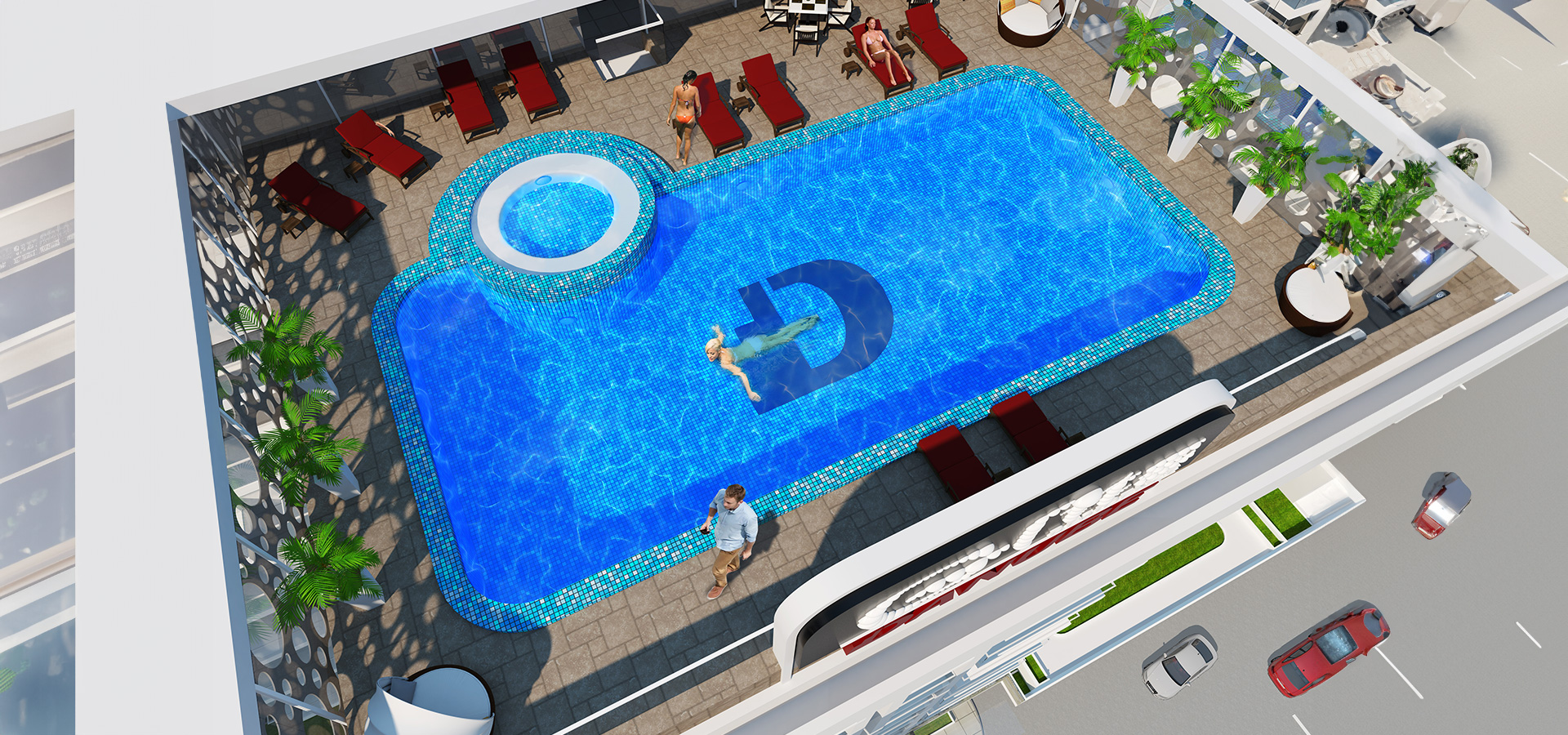 Make a splash in our refreshing rooftop swimming pool