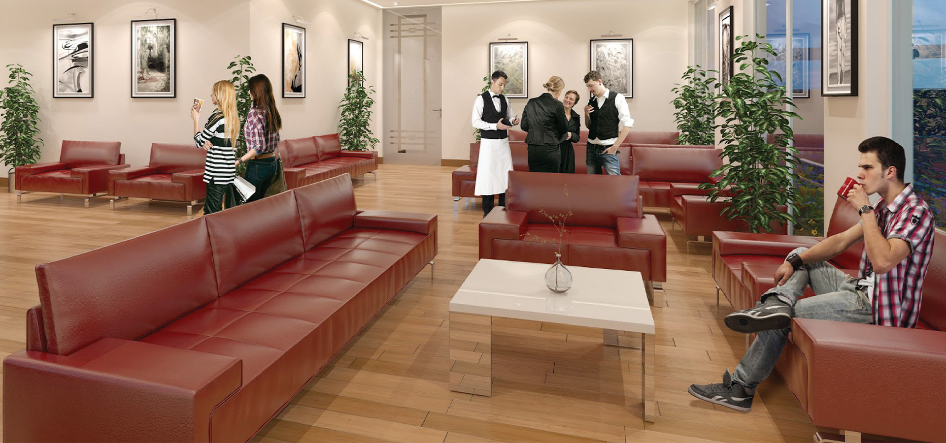 The modular furniture and convertible sofas are designed to maximize space, allowing for flexible living arrangements.